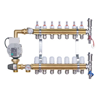 Rozdzielacz mosiężny do ogrzewania podłogowego 12 obwodów z adapterami PEX16 i grupą mieszającą 3,4KVS z pompą Wilo