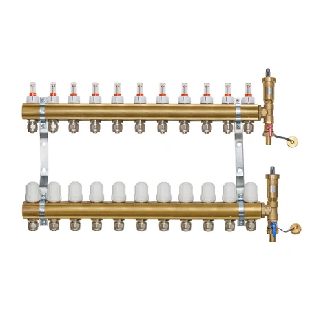 Rozdzielacz do podłogówki 11 obwodów z odpowietrznikiem Afriso i złączkami na rurę 16 x 2.0
