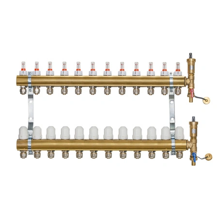 Rozdzielacz do podłogówki 12 obwodów z odpowietrznikiem Afriso i złączkami na rurę 16 x 2.0