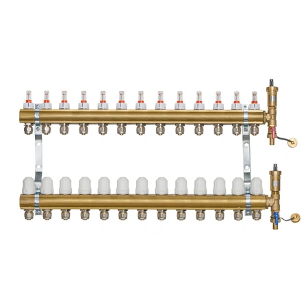 Rozdzielacz do podłogówki 13 obwodów z odpowietrznikiem Afriso i złączkami na rurę 16 x 2.0