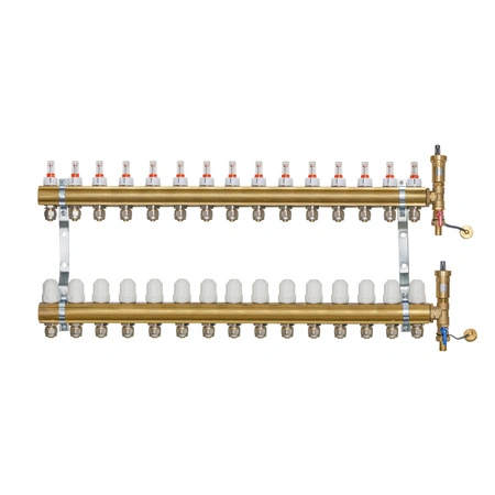 Rozdzielacz do podłogówki 15 obwodów z odpowietrznikiem Afriso i złączkami na rurę 16 x 2.0