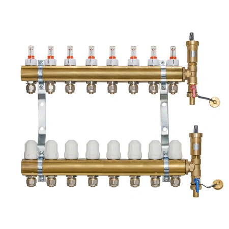 Rozdzielacz do podłogówki 8 obwodów z odpowietrznikiem Afriso i złączkami na rurę 16 x 2.0